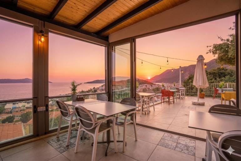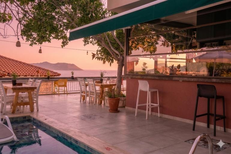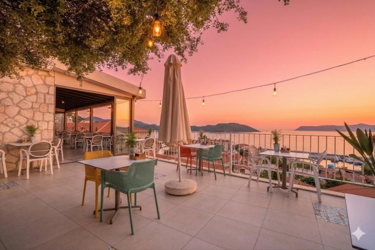We are located on a scenic hillside in the heart of Kaş, overlooking the town from above. Just a 5–10 minute walk away, you’ll find Kaş’s most popular bars, restaurants, shops, entertainment venues, and even the nearest beach. From our picturesque balconies, you can admire the breathtaking views of the Mediterranean, while our garden terraces offer a quiet, peaceful, and relaxing atmosphere. As a small family-run business, we are delighted to welcome our guests year-round in a warm, friendly, clean, and stylish setting.