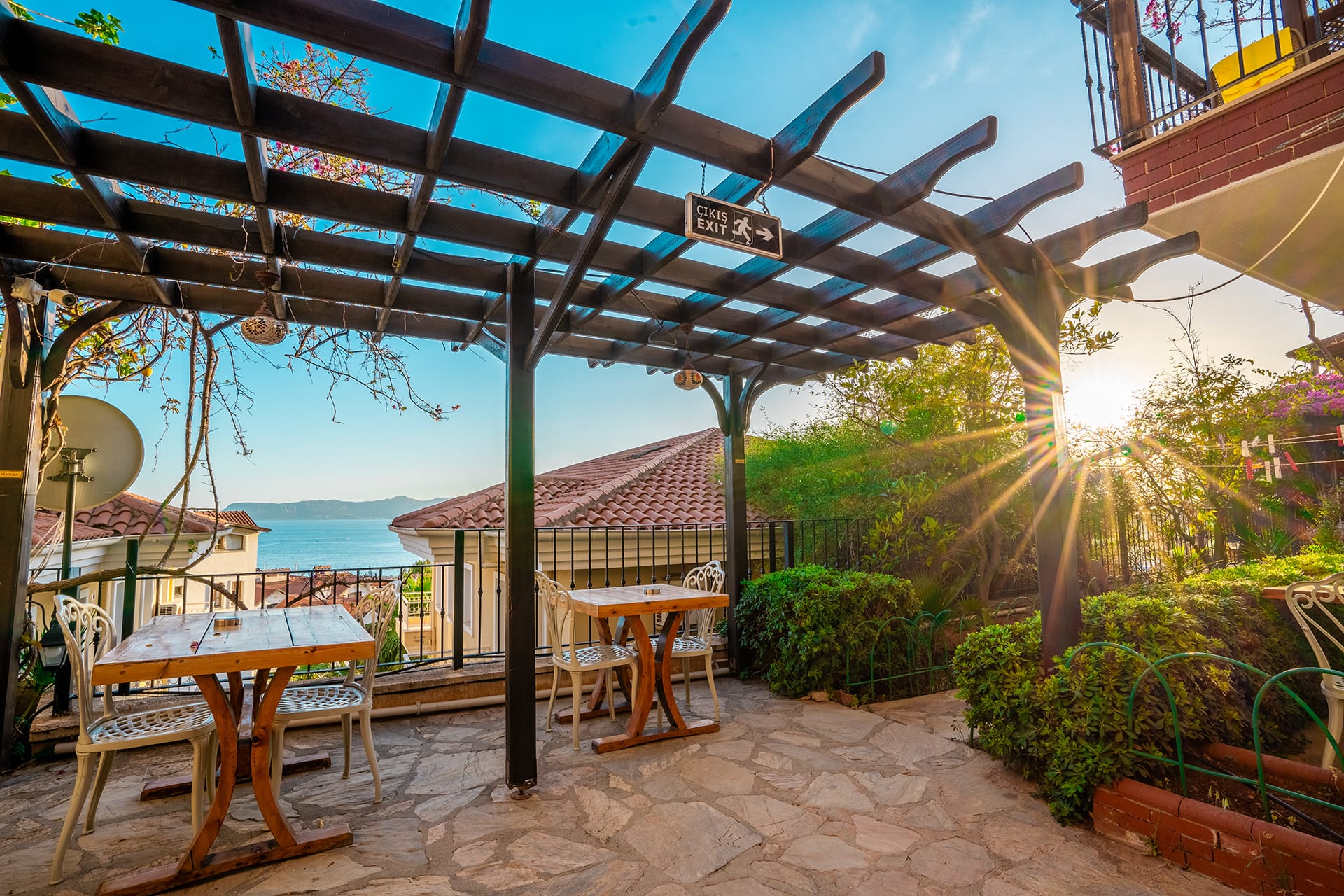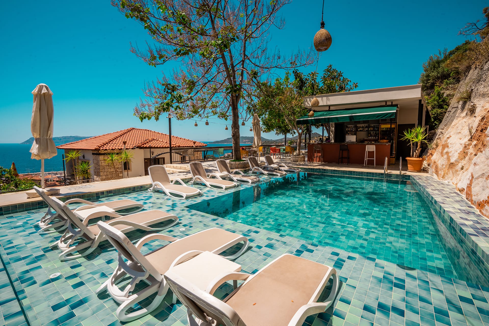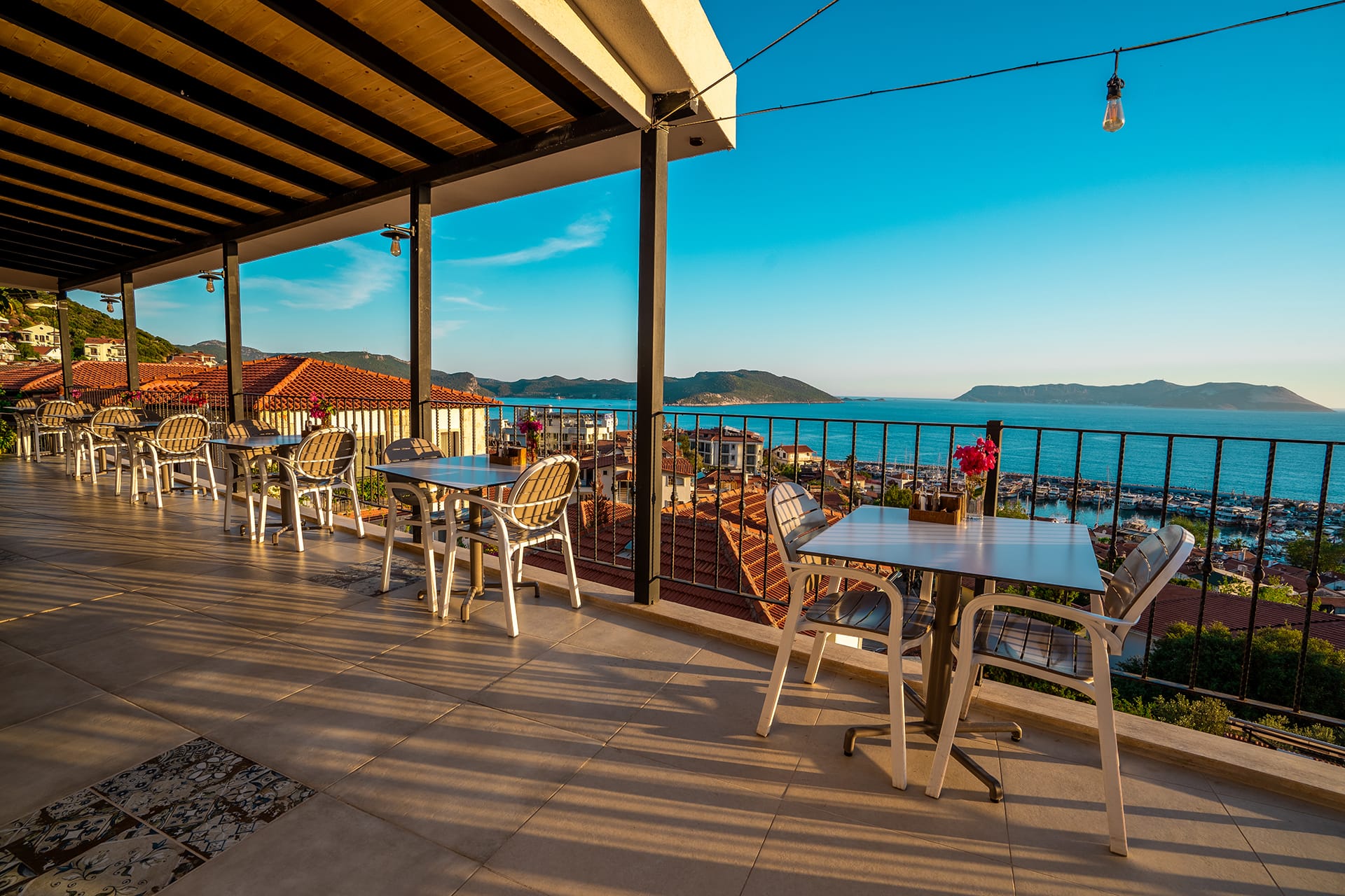 Kaş’ın kalbinde, şehri yukarıdan gören manzaralı bir yamaçta yer alıyoruz. Ünlü barlar, restoranlar, mağazalar ve eğlence mekânları ile en yakın plaj dahil olmak üzere Kaş’ın tüm güzelliklerine yalnızca 5–10 dakikalık yürüyüş mesafesindeyiz. Pitoresk balkonlarımızdan Akdeniz’in büyüleyici manzarasını izleyebilir, bahçe teraslarımızda ise sessiz, huzurlu ve keyifli bir atmosferin tadını çıkarabilirsiniz. Küçük bir aile işletmesi olarak, konuklarımıza yıl boyunca sıcak, samimi, temiz ve şık bir ortamda konaklama imkânı sunmaktan mutluluk duyuyoruz.